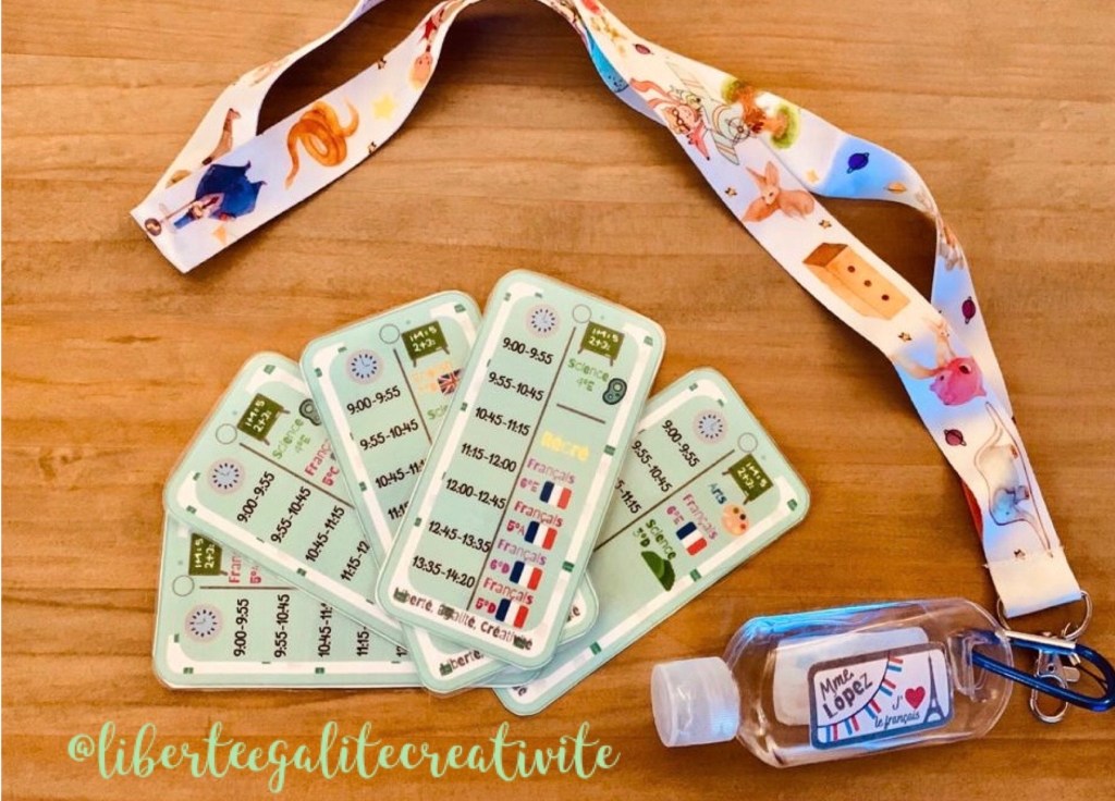 Otro año más, he preparado mi horario-llavero a juego con el cahier. Como en los anteriores, está organizado por días. En una cara, encontramos el día correspondiente y en la otra la organización horaria.