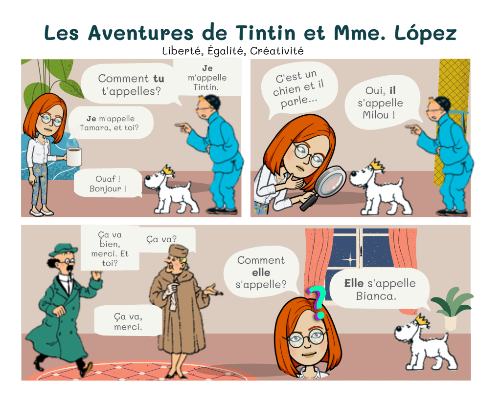 A través de esta imagen comenzamos a comprender estructuras sencillas, deduciendo su significado para responder a las preguntas planteadas empleando «les nombres». Además, practicamos la atención.