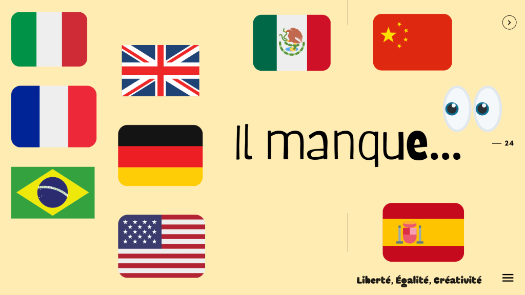 En el siguiente juego, serán los países, a través de las banderas, lo que repasemos. Los niños/as deberán presentar atención a la diapositiva para identificar el país que falta: