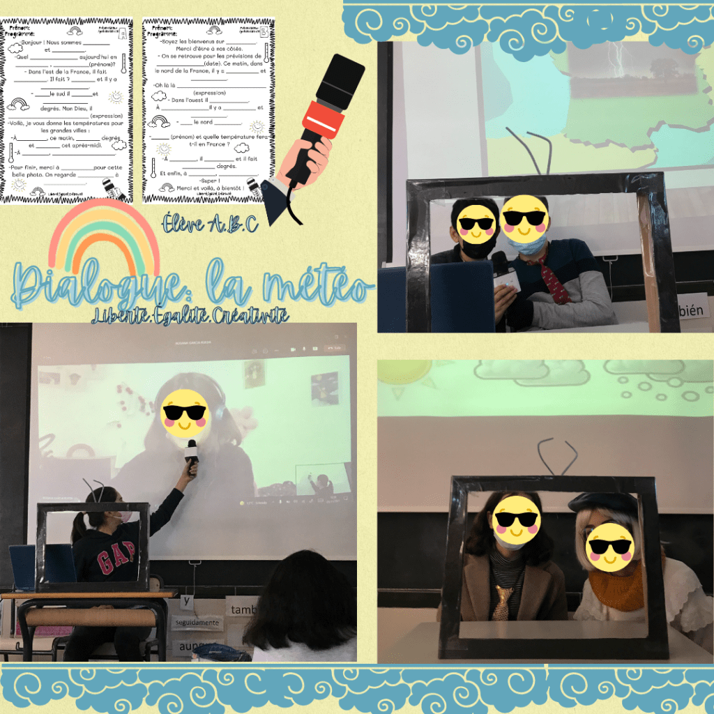 Estas semanas hemos estado preparando las presentaciones del tiempo. Hemos partido de unos guiones para completar por parejas y tríos.