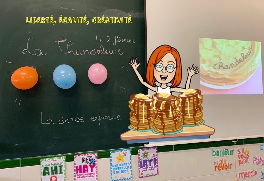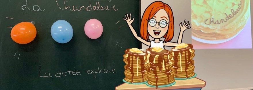 Hemos aprovechado la temática para hacer una dictée explosive. En el interior de cada globo había un dibujo de una crêpe con dos oraciones que conectaban la Chandeleur con el verbo être y avoir.📝