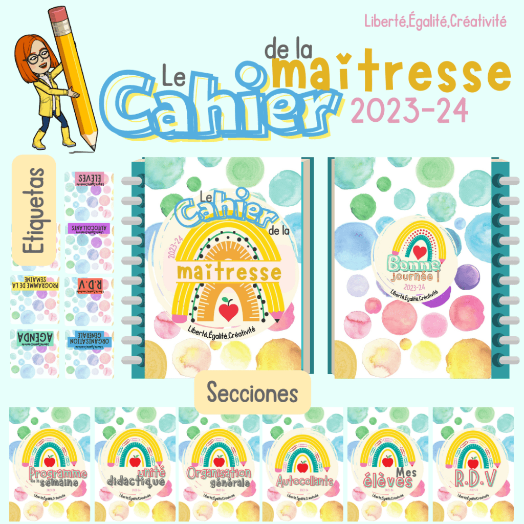 Coucou !! Ya está listo mi cuaderno de este año. A continuación lo comparto para que podáis descargarlo y crear el vuestro. Este año, además de especialista, seré tutora, así que he incluido algunos apartados que pueden ser útiles para ello.