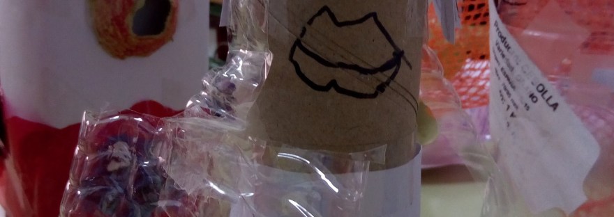 ¡Mirad este rollo de papel con su bolso de plástico!Me sorprendió todo lo que llegaron a crear en tan poco tiempo y lo completa que resultó la actividad.