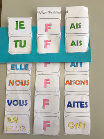 Para entender qué era eso de “y’en a une qui est en trop” hemos hecho un juego después de la canción utilizando las pizarritas. Yo proyectaba diapositivas de cuatro imágenes, donde una de ellas se diferencia de las demás por ser masculino, femenino, plural…Así ha sido como hemos recordado el vocabulario que aparecía, levantando nuestra pizarra con la opción que sobraba. 🏫